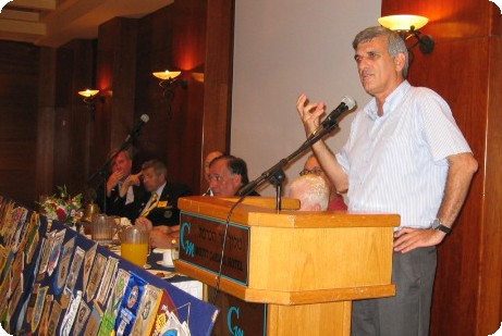 היום 31/8/05, הוא "יום הנחמדות" העולמי. כמה היא סימלית הופעתו המכובדת של המרצה בפני המועדון ביום זה . נכחו למעלה מ 110 חברים ואורחים, ראש העיר חיפה, נגיד האיזור אבנר פוקס, נציגים מ 4 מועדוני רוטרי (כרמל, גבעתיים, מוריה ועוספיה) נגיד רוטרי רומניה, ונשיאי שלושת המועדונים כרמל גבעתיים ומוריה. בהרצאתו המעניינת, העניינית, התמציתית הממוקדת, והברורה (גם ללא מצגת ...) מזכיר לנו דר' בכר שישראל היתה על סף קריסה לפני כשנתיים וחצי. התוכנית שהונהגה על ידו, מיד עם כניסתו לתפקיד הצליחה מעבר למצופה. למרות שלישראל יש בעיות רבות, הידועות לאוצר, אין ביכולתו לפותרן. יש סדר עדיפויות לפיתרון הבעיות.
